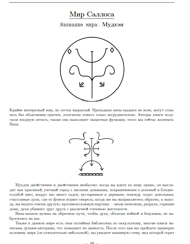 Некто оккультист Дмитрий Рах решил по приколу описать мой мир.. Весь прикол в том что вот эти "проходные визы" открывают проход исключительно в голографер Камалоки.. то есть в иллюзию. Потайная библиотека действительно существует, но чтобы туда попасть - надо найти замок, в центральном квартале. И вообще то туда даже не все духи имеют право входа. А уж людям...Я последний раз для астральной проекции подобное разрешение подписывал примерно лет 180 назад какому - то алхимику того периода из европейских стран. с духами нельзя разговаривать? да ладно... а уж войну -это только голограф и показывает, точнее транслирует новости с войны в 5м-6м измерении :) а уж по поводу отсутствия храма и дворца - явный бред. Есть и храм и дворец, точнее замок :) поржал с названия мира. Мудхэн это не название мира, это название конкретной иллюзии в программах голографера :)