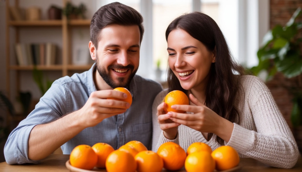 Прошло несколько минут. Дверь в спальню приоткрылась. На пороге стоял Олег. В руках он держал два апельсина. Ярко-оранжевые, идеальные, как с рекламной картинки.