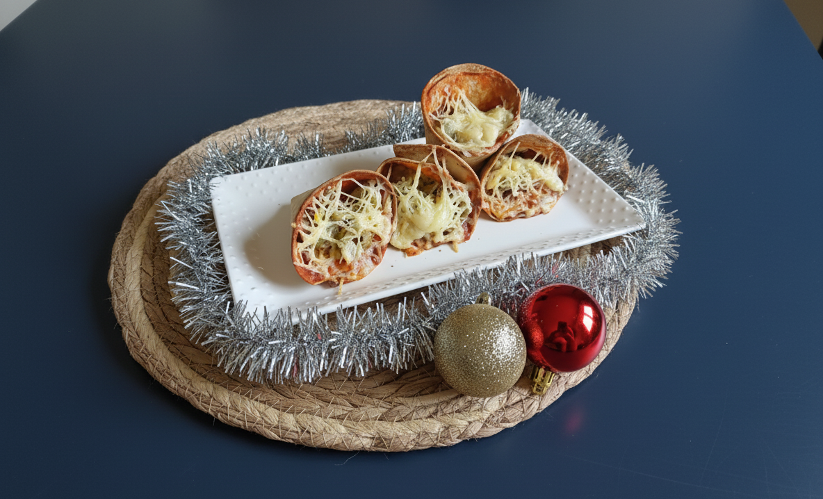 ✅ Как свернуть рожок? Легко! Сложи тортилью пополам, а затем один край заверни к центру, формируя кулёк. Скрепи зубочисткой, чтобы не развалился при выпечке.