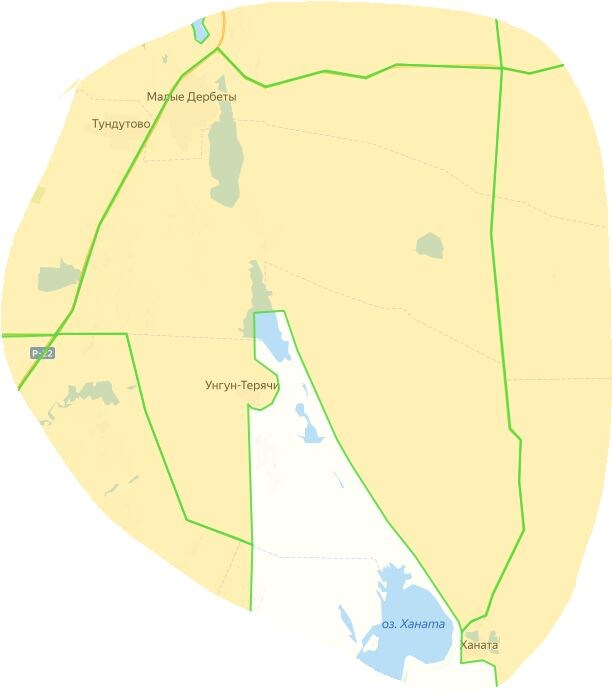 Общедоступные охотничьи угодья Малодербетовского района Участок "Малодербетовский" Северная граница - от границы Малодербетовского района по дороге Р-22 «Каспий» до поворота на населенный пункт Восход, долее по дороге до оросительного канала Р-1 Восточная граница - по оросительному каналу Р-1 до точки с координатами 47.797243 N, 44.902496 E, далее на юг по грунтовой дороге до населенного пункта Ханата Южная граница - от населенного пункта Ханата на восток по грунтовой дороге до границы Заказника Ханата, далее по границе Заказника Ханата до границы Малодербетовского района Западная граница - по границе Малодербетовского района до дороги Р-22 «Каспий» Участок "Первый Малодербетовский" Северная граница - по границе Малодербетовского района до озера Барманцак, далее по западному, восточному и южному берегу озера Барманцак до границы Малодербетовского района, далее по границе Малодербетовского района до оросительного канала Р-1 Восточная граница - по оросительному каналу Р-1 до дороги на на