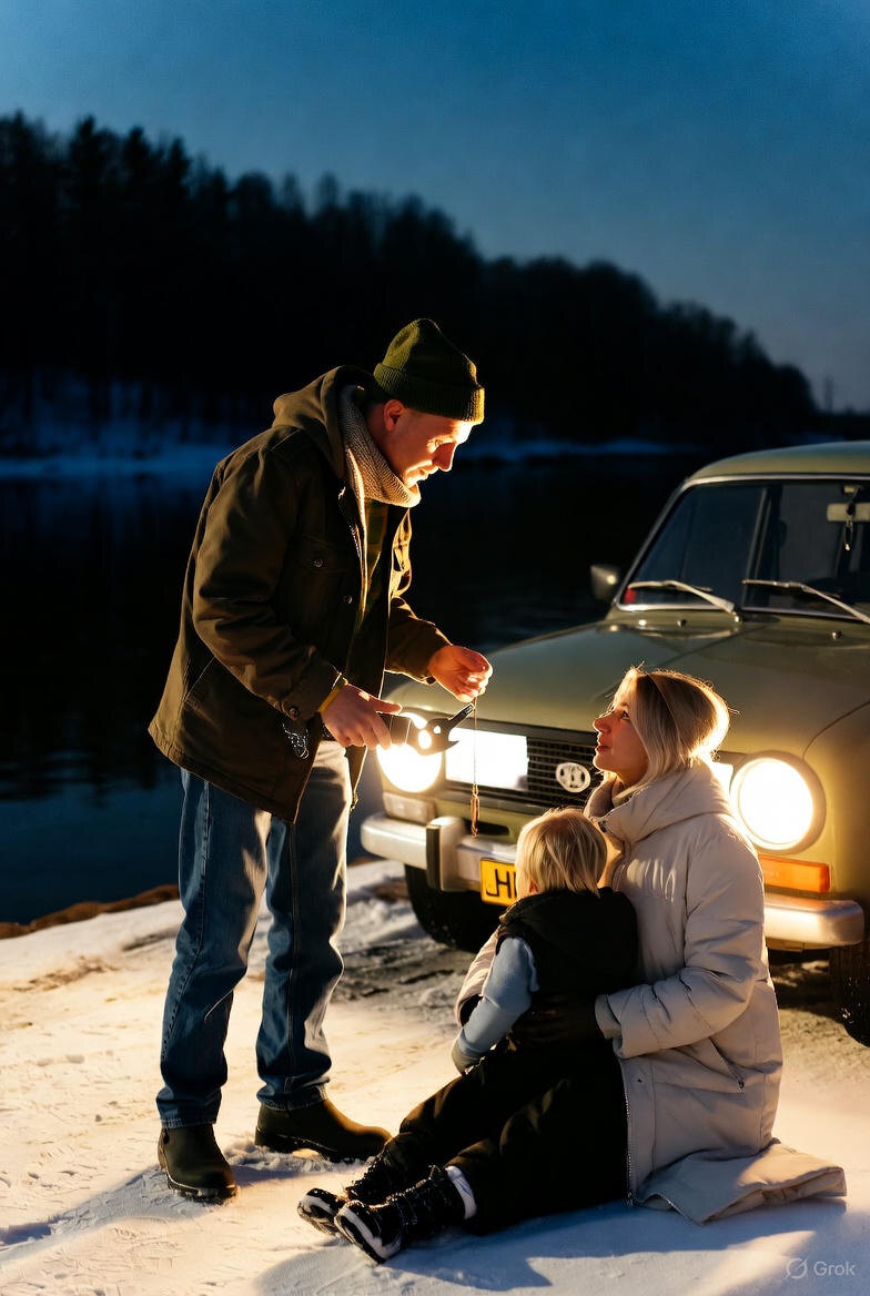 В маленьком городке, где улицы петляют между старыми домами и шумит река, жил таксист по имени дядя Коля. Он был добрым душой: всегда улыбался пассажирам, подвозил бабушек бесплатно и даже кормил бездомных котов у вокзала. Его старенький "Жигуль" был как верный конь — потрёпанный, но надёжный. Однажды поздним вечером, когда снег валил хлопьями, а ветер выл за окном, дядя Коля только что закончил смену. Он сидел в машине у гаража, попивая чай из термоса, и думал о горячем ужине дома. Вдруг зазвонил телефон — диспетчерская служба. — Коля, срочно! — кричал голос. — На окраине, у реки, женщина в беде. Её машина сломалась, ребёнок плачет, а мороз крепчает. Никто не берёт заказ — все разъехались! Дядя Коля не раздумывал. "Доброе дело не ждёт", — пробормотал он, заводя мотор. Дорога была скользкой, фары выхватывали белые вихри снега. Он мчался, как на крыльях, объезжая сугробы и ямы. Сердце колотилось: "Только бы успеть!" Через пятнадцать минут он подлетел к месту. Там, у обрыва, стояла ином