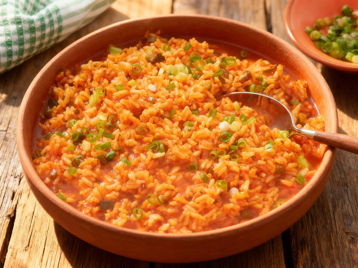 Пряный испанский рис Масло сливочное - 16 гр. Рис длиннозёрный - 368 гр. Перец халапеньо - 48 гр. Лук зеленый - 32 гр. Чеснок - 5 гр. Тмин молотый - 2.4 гр. Перец чили молотый - 2.4 гр. Перец чили кайенский - 1.2 гр. Паприка копченая - 1.2 гр. Куриное филе - 200 гр. Лавровый лист - 0.1 гр. Перец черный горошком - 0.04 гр. Вода - 1040 мл. Соус томатный - 120 гр. пошаговый рецепт на cookhelp.ru #простыерецепты #требуетвремени #рецепты #cookhelp