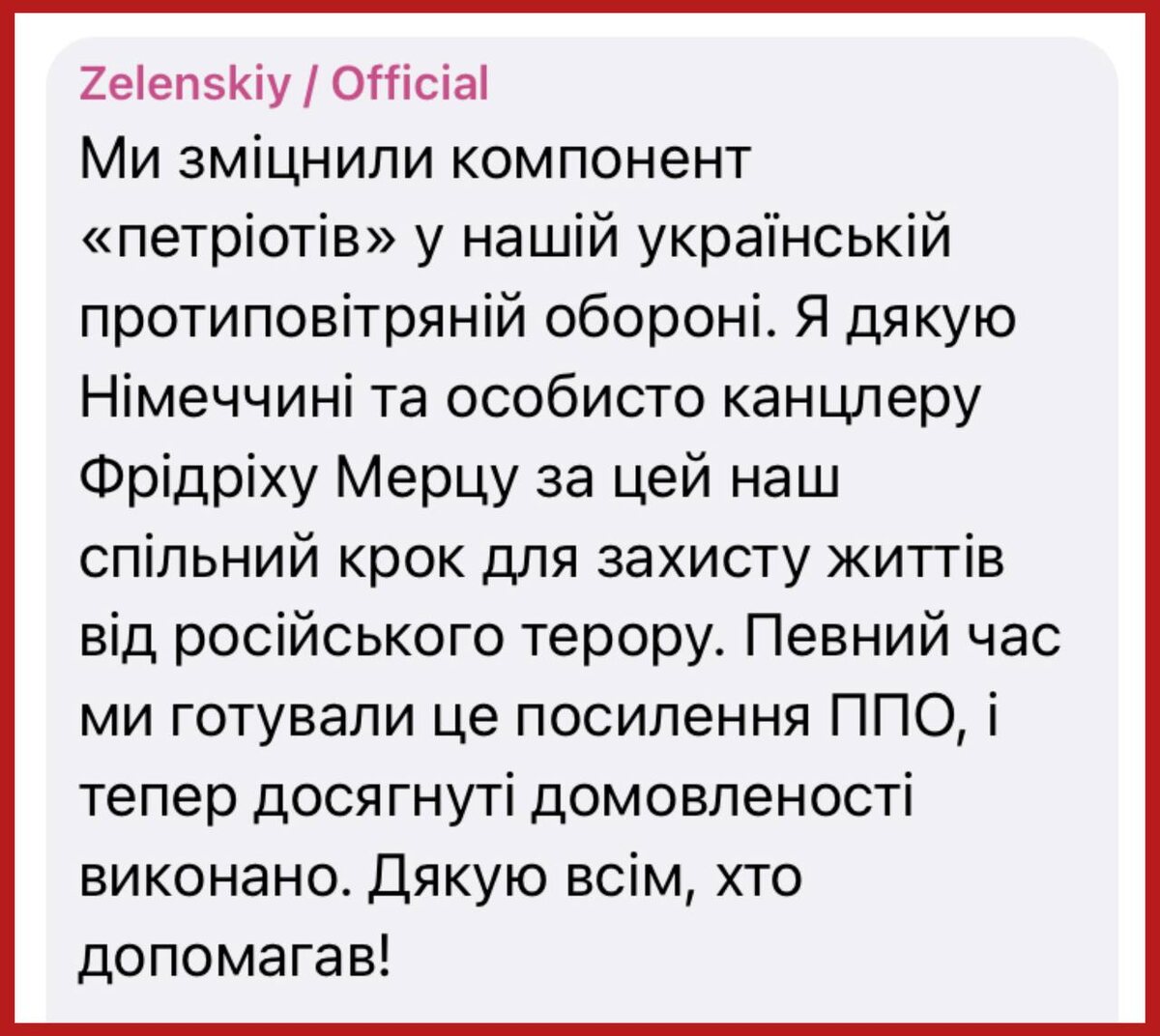 Германия поставила режиму Зеленского две зенитные ракетные системы Patriot, обещанные министром обороны ФРГ Писториусом еще в августе