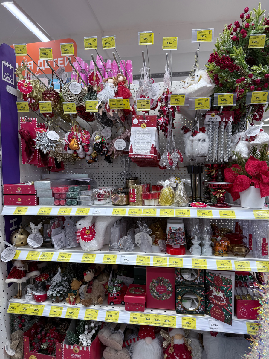 Привет, мои дорогие читатели! Сегодня я хочу поделиться с вами впечатлениями от новогодней коллекции в магазине «Магнит Косметик». Именно там я обнаружила целую коллекцию чудесных новогодних украшений, декора, и появилась немного новой посуды к празднику, в общем все рассмотрим в этом обзоре поближе 😍 Стеклянные украшения-шарики в виде шишки: Настоящая любовь с первого взгляда! Представлены в потрясающем разнообразии оттенков, украшены мельчайшими блёстками, создавая иллюзию настоящего звездопадного сияния. Цена 199- ❄️ Акриловые украшения в виде сосулек — изящные изделия, украшенные серебристым глиттером, дополненные крошечными бусинами, бисером и миниатюрными жемчужинами. Цена 99 рублей! 💛 Керамические шарики, внутри спрятаны светодиодные лампы, создающие мягкую игру света. Очень стильно смотрятся на ёлочке или столе. Стоит такое удовольствие 299 рублей Особенно покорил уголок с коллекцией милых собачек в красных кружках! Они такие забавные, улыбчивые и теплые, что просто невозм