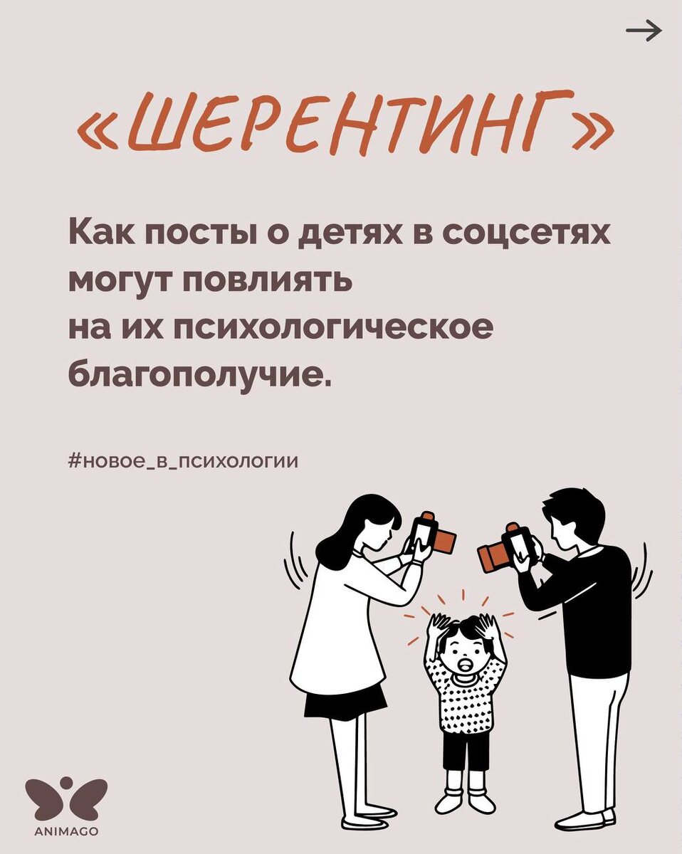 Публикация фото и видео ребёнка может мешать формированию личности, создавать нежелательный цифровой след и повышать риск травли или утечки данных. Поэтому важно внимательно относиться к тому, что мы делимся о детях в соцсетях. Понять, как ваш ребёнок чувствует себя в этом, помогут психологи «Анимаго» на Чекапе. Подробнее о занятии — по этой ссылке.
