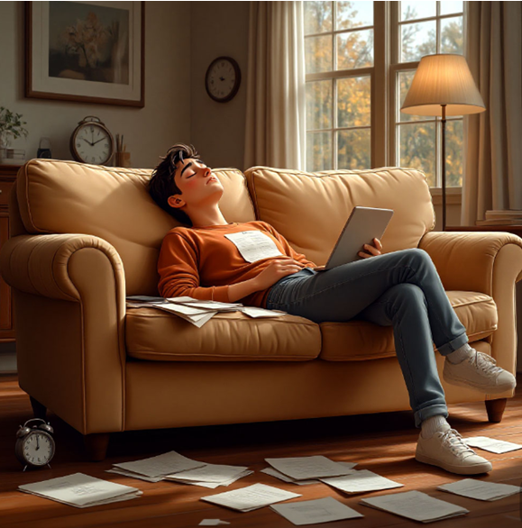 Тело (уже обнимая диван): Интересная стратегия. А давай сначала проверим, что нового в инстаграмме у того парня, с которым мы учились в третьем классе? Вдруг он тоже пишет отчет? Нам нужна моральная поддержка.