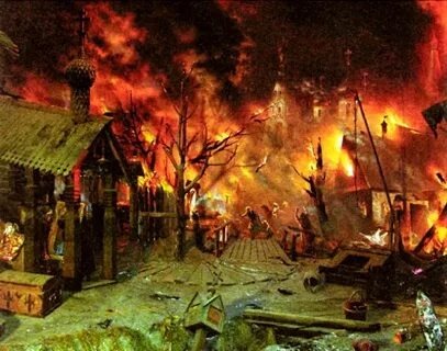 Сильный ветер – союзник катастрофы – перекидывал языки пламени с крыши на крышу. Высохшее за лето дерево вспыхивало как порох. Огонь добрался до деревянных лавок Гостиного двора. Вскоре он превратился в единый гигантский факел, освещавший ужас на лицах курян.
