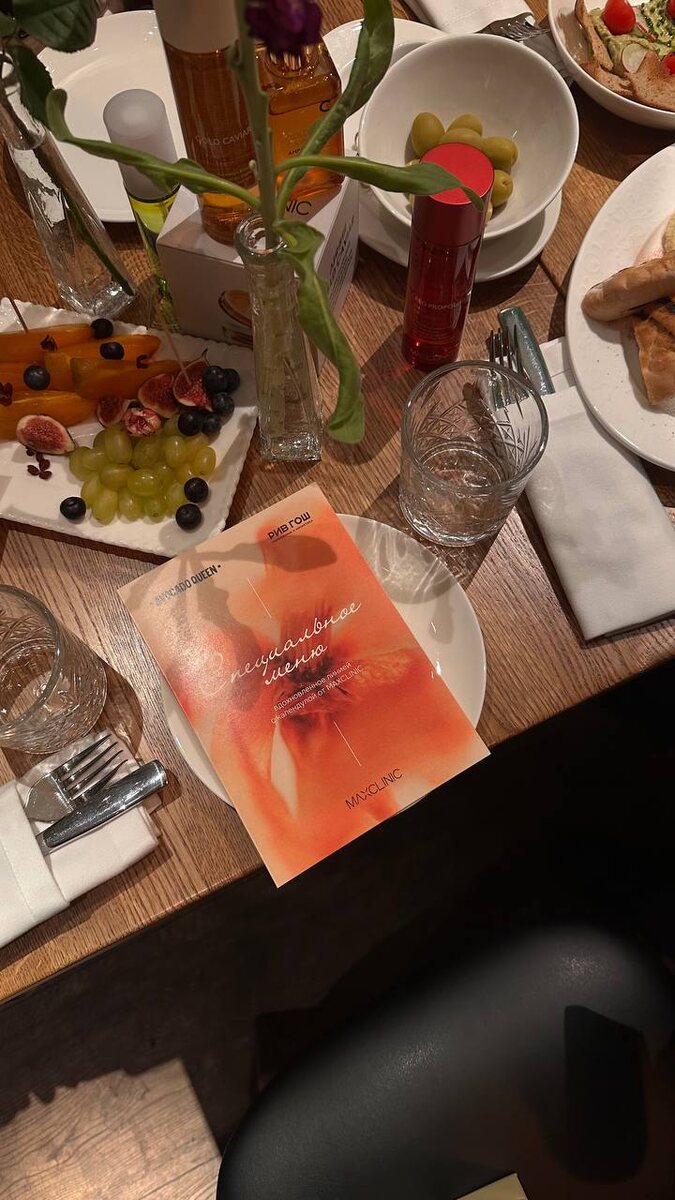 На прошлой неделе я побывала в Avocado Queen - одном из проектов Аркадия Новикова, известном своим зелёным настроением и лёгкими блюдами. Но этот визит был не совсем обычным: ресторан собрал гостей не просто на ужин, а на презентацию косметики Maxclinic. За длинным столом в мягком свете свечей мы слушали о составе средств, тестировали текстуры, обсуждали ингредиенты и параллельно наслаждались осенним меню. Атмосфера получилась камерная, почти домашняя, но при этом с лёгким налётом гламура, как и всё в Avocado Queen. О бренде рассказывали представители компании - Сергей Артеменко и Woo Hyeyong. Основная часть выступления была за Сергеем: он объяснял принципы формул, разбирал составы и делился тем, как компоненты воздействуют на кожу. Для меня, как для человека, постоянно взаимодействующего с бьюти-темой, было особенно интересно услышать профессиональные термины и наконец понять, чем отличается, например, пептидный комплекс от гидролизованных масел. Но, конечно же, за один вечер все эти