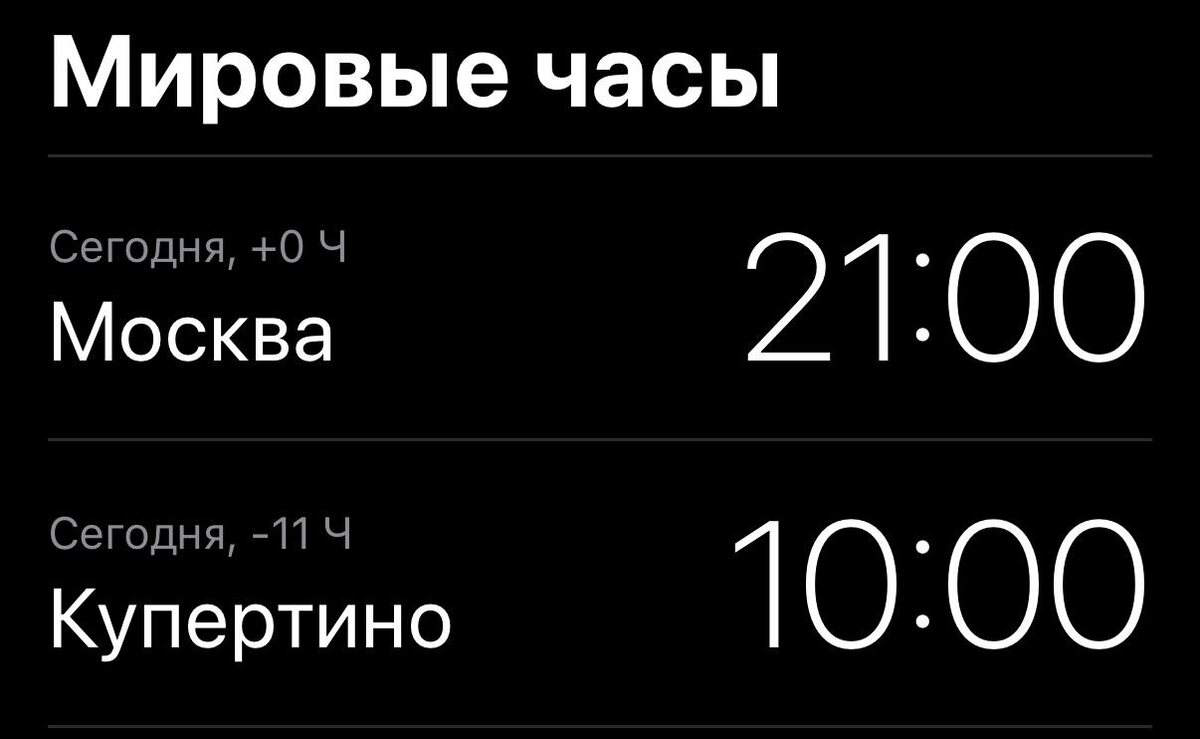 🕐 Перевод времени! Напоминаю, что США сегодня переходят на зимнее время и теперь всякие беты/релизы/активности/презентации Apple будут сдвинуты относительно вашего часового пояса. На летнее время вернутся только в марте. По МСК было в 20:00, теперь будет в 21:00. ⚠️ ТАК ЧТО БЕТЫ ТЕПЕРЬ ПОСЛЕ 21:00 ПО МСК Часовой пояс будет теперь такой для Купертино: Pacific Daylight Time (PDT), UTC -8 подставляйте сами под свою локацию.