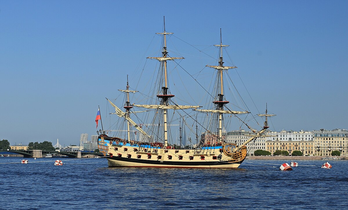 В Петровскую эпоху (конец XVII — начало XVIII вв.), первые корабли Балтийского флота несли на себе гладкоствольные орудия — пушки, единороги и гаубицы, отлитые из чугуна и бронзы. Калибры измерялись в фунтах (вес чугунного ядра). Основным боеприпасом было ядро для разрушения корпуса и картечь для поражения экипажа. Артиллерия располагалась по линейной схеме — в несколько ярусов вдоль бортов, что и дало название классу кораблей — линейный корабль. Тактика боя сводилась к сближению и нанесению мощного залпового удара.