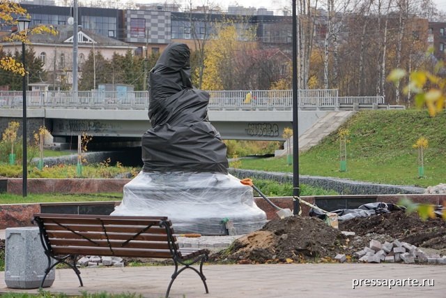 - Последние работы по благоустройству территории вокруг памятника в Иссерсоновском сквере подходят к завершению. Сама скульптура, созданная по эскизу народного художника России Александра Рукавишникова, уже на постаменте, закрыта покрывалом и ждёт часа, когда чёрные покровы будут сброшены. Планируется, что это произойдёт 4 ноября.