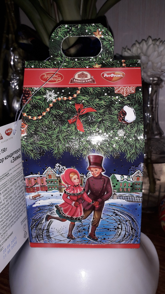 Вот и прошёл год, быстро и незаметно. Скоро, очень скоро будем встречать Новый год. И потихоньку на канале будут появляться посты, так или иначе посвященные этому празднику. Первые сладкие подарки появились в магазинах ещё в октябре. В этом сезоне, я тоже сделаю несколько обзоров на них. Первый подарок я купила в конце октября в фирменном магазине «Алёнка». Выбор подарков в нём очень большой, все они ±одинаковые, так как все они от «Объединённых кондитеров», основное отличие в весе и оформлении подарка. Я приобрела самый дешёвый из тех что были в магазине. Для лучшего понимания о конфетах в подарке, к каждой я дам описание, которое представлено на официальном сайте магазина. Стоимость подарка на момент покупки составляла 249 рублей, я купила с дисконтной картой за 219 рублей. Коробка подарка очень красивая, красочная, в качестве предохранения клапан заклеен скотчем, конфеты внутри россыпью, все свежие. Всего в подарке 10 конфет от 4 кондитерских фабрик. Конфеты все разные без повторов