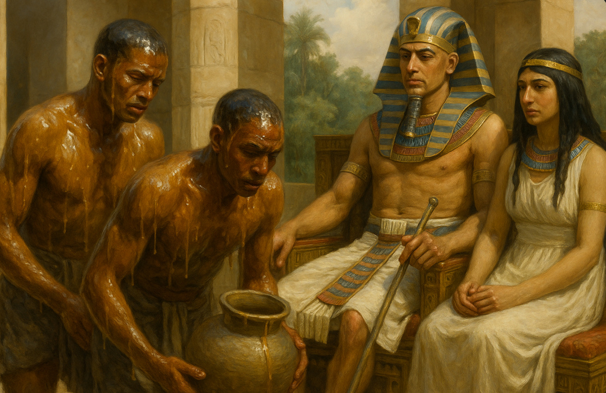 В жару, среди влажных берегов, мух было неисчислимое множество. Они досаждали не только крестьянам, но и самому фараону, который, по представлениям египтян, считался земным воплощением бога и не должен был испытывать ни малейшего дискомфорта. Фараон не мог отмахиваться от мух сам — это считалось унижением для правителя. Так появился обычай, который позже стал легендой. Египтяне обожали мёд. Он был символом божественной сладости и вечности, использовался в ритуалах и медицине. Но в данном случае мёд имел практическую цель. Слуги, стоявшие рядом с фараоном, действительно смазывали тело мёдом, чтобы привлекать к себе мух и комаров, отвлекая их от правителя.