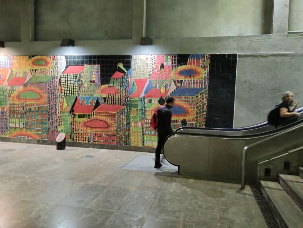 На следующее утро мы запланировали в первой половине дня поездку в Парк наций. Мы планировали пройтись по самому большому торговому центру Лиссабона, а также посмотреть то, что осталось от Всемирной выставки 1998 года. Надо сказать, что метро в Лиссабоне очень удобное и в нем легко ориентироваться. Какая-то рыба И дружба народов: Выход сразу на железнодорожный вокзал и в торговый центр. Но, увы (или, наоборот, ура) торговый центр ничего нового не смог нам предложить. Зато мы позавтракали в Макдоналдсе с прекрасным видом на парк. Новым для нас стал очередной шаг в борьбе за экологию: теперь надо было не просто отнести за собой поднос и вывалить в мешок мусор - теперь свой мусор надо было разложить в шесть! разных мусорок: Скажите, только честно, вы готовы, после того как поели, копаться в остатках и разделять по ящикам? И где, после этого, мыть руки? Как я заметил, желающих помочь экологии было очень мало - практически все или оставляли подносы на столах или ставили их около мусорок. О