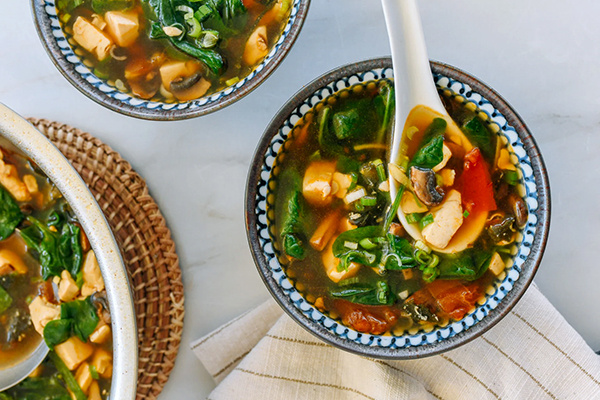 Знаете, что объединяет усталый ноябрьский вечер, застоявшийся метаболизм и случайно забытый в шкафу пакет вакаме? Ответ — этот суп. Лёгкий, быстрый, умами-наполненный. Он не строит иллюзий: не «очищает» чудесным образом, не обещает похудение за ночь. Но он работает. Мягко, вкусно, по-восточному — питает, согревает, балансирует. В китайской кухне суп — это не просто «первое». Это инструмент восстановления баланса Инь и Ян, жидкий аккорд вкусов, где каждый ингредиент звучит точно в нужный момент. Этот рецепт вдохновлён восточной аптекой, но без фанатизма: здесь и водоросли вакаме, и тофу, и капля темного уксуса. Да-да, бульон на воде — и всё равно насыщенный. Потому что есть волшебное слово: умами. Мы играем на естественных глутаматах: грибы, томаты, соевый соус. Добавьте чуть мисо — и вы на ступень выше на пути к дзен-вкусу. 1. Ароматный старт 2. Грибы 3. Бульон 4. Финальный штрих Суп идеален сам по себе. Но если хотите сытнее — добавьте варёный рис или собу. Только без фанатизма — блюд