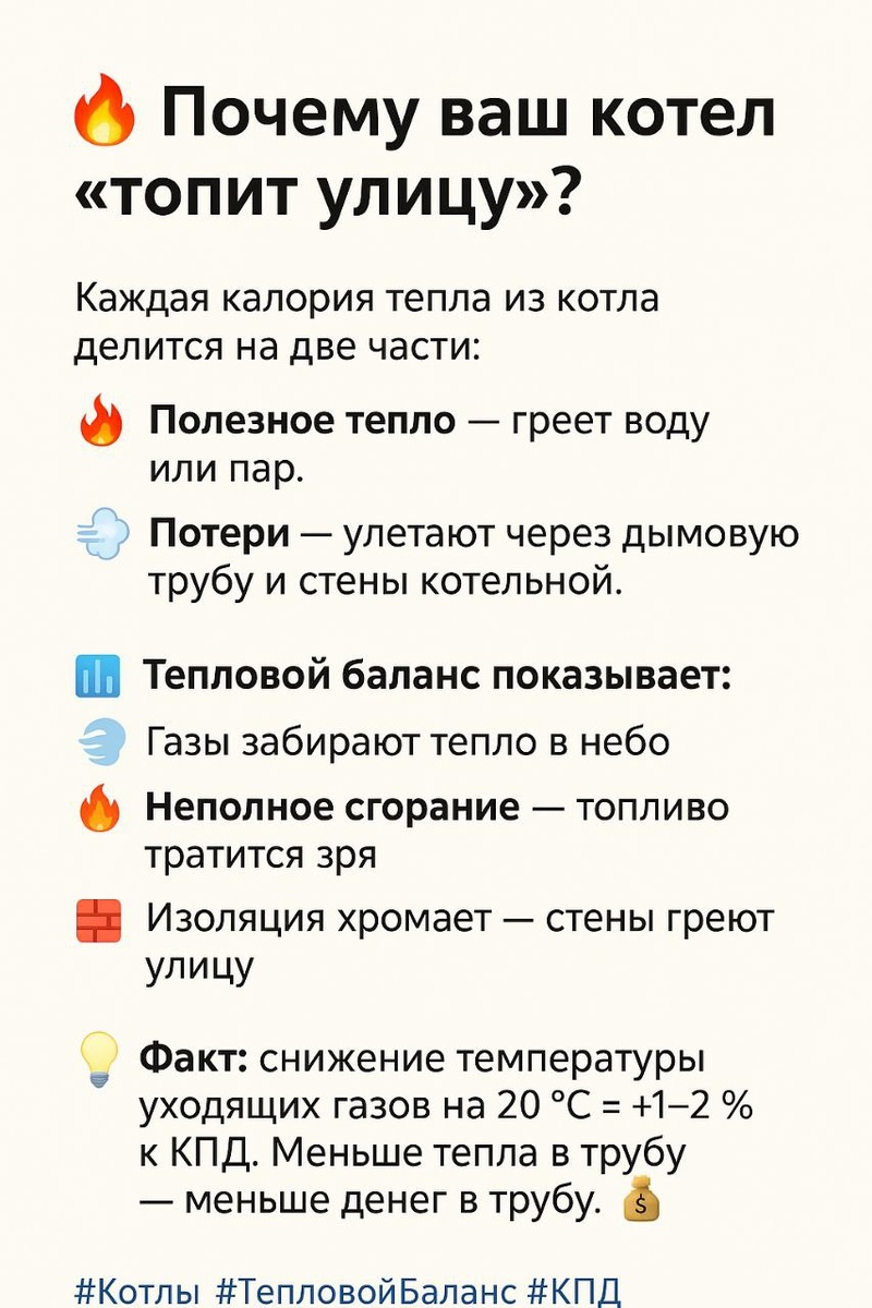 Тепловой баланс — это не просто формула в учебнике, а реальный инструмент экономии топлива и снижения выбросов через трубу 🌱.