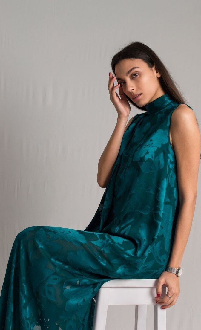 Transformative Teal в шелке выглядит благородно, словно мерцает изнутри.