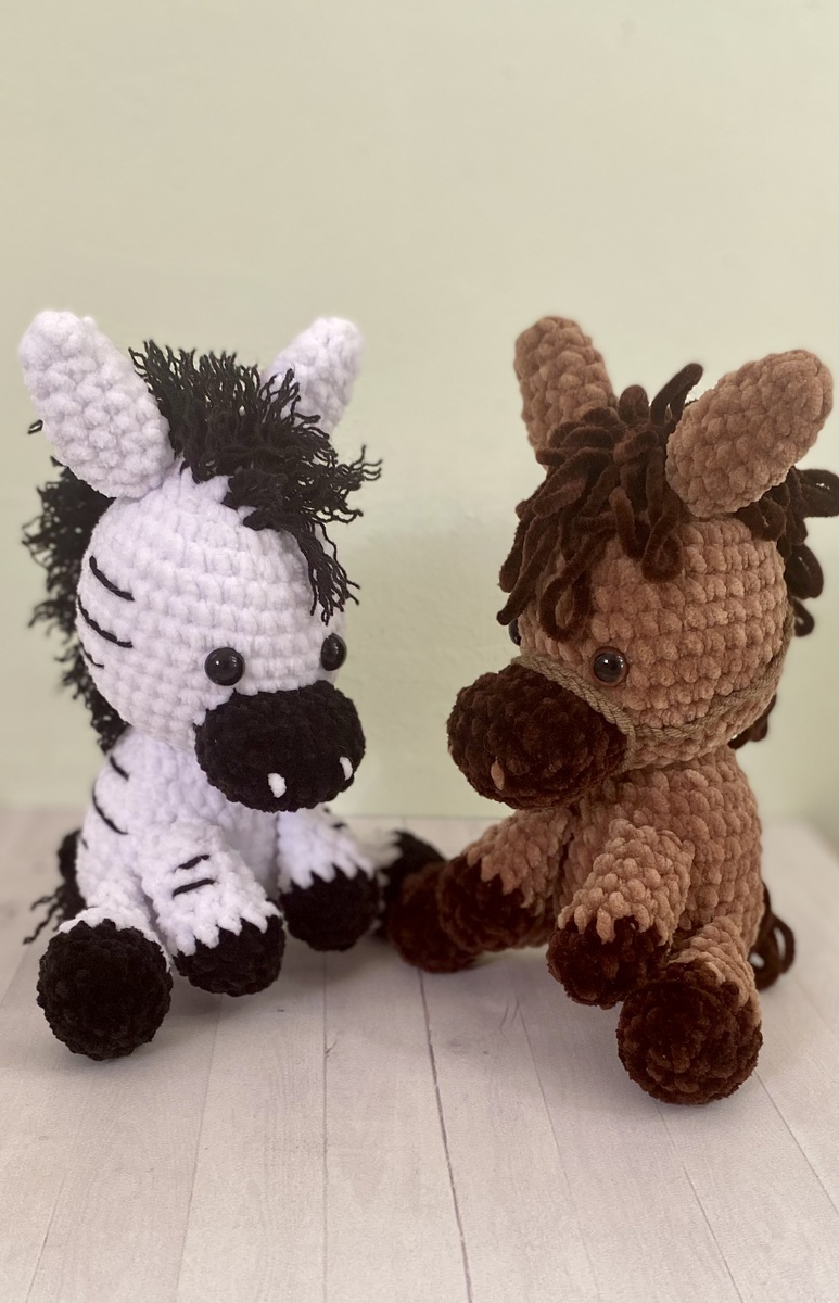 Ушки: КА: 6 сбн Ряд 2: 6 сбн Ряд 3: (1 сбн, пр)*3 (9) Ряд 4-7: 9 сбн Ряд 8: (1 сбн, уб)*3 (6) Ручки: КА : 6 сбн Ряд 2: пр*6 (12) Ряд 3: 12 сбн за заднюю стенку петли Меняем цвет нити Ряд 4: 12 сбн Ряд 5: (2 сбн, уб)*3 (9) Ряд 6-7: 9 сбн Ряд 8: (1 сбн, уб)* (6) Закрываем 3 сбн Ножки: КА: 6 сбн Ряд 2: пр*6 (12) Ряд 3: (3 сбн, пр)*3 (15) Ряд 4: 15 сбн за заднюю стенку петли Меняем цвет нити Ряд 5: (3 сбн, уб)*3 (12) Ряд 6: (2 сбн, уб)*3 (9) Ряд 7-10: 9 сбн Закрываем 4 сбн Мордочка: 5 вп Ряд 1: 3 сбн, 3 сбн в одну петлю и поворот, 2 сбн по другой стороне и 1 пр (10) Ряд 2: пр, 3 сбн, 3 пр, 2 сбн, 2 пр (17) Ряд 3-5: 17 сбн Голова/ туловище: КА: 6 сбн Ряд 2: пр*6 (12) Ряд 3: (1 сбн, пр)*6 (18) Ряд 4: (2 сбн, пр)*6 (24) Ряд 5: (3 сбн, пр)*6 (30) Ряд 6: (4 сбн, пр)*6 (36) Ряд 7-12: 36 сбн Ряд 13: (4 сбн, уб)*6 (30) Ряд 14: (3 сбн, уб)*6 (24) Ряд 15: (2 сбн, уб)*6 (18) Ряд 16: (1 сбн, уб)*6 (12) Ряд 17: уб*6 (6)