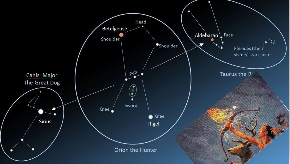 Созвездие Ориона древние египтяне отождествляли с Осирисом - Богом производительных сил природы, а Сириус (по-гречески Сотис) названа «беременной звездой» или звезда женского начала, египтяне отождествляли с Исидой, супругой Осириса, матерью Гора - Богиней материнства и плодородия.