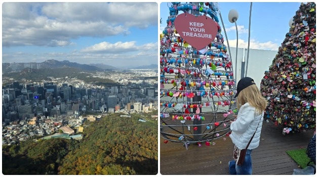 Сразу после приезда - без паузы, без вдоха - нас ждал подъём на Намсан. Эта гора в самом центре Сеула - как смотровая площадка над жизнью. Поднимаешься на фуникулёре, а город раскрывается под тобой, как карта -бесконечный, яркий, живой. На вершине - знаменитая башня N-Seoul Tower, символ города. Там влюблённые вешают замочки, а туристы просто молча смотрят вниз - Сеул отсюда выглядит почти нереальным.
