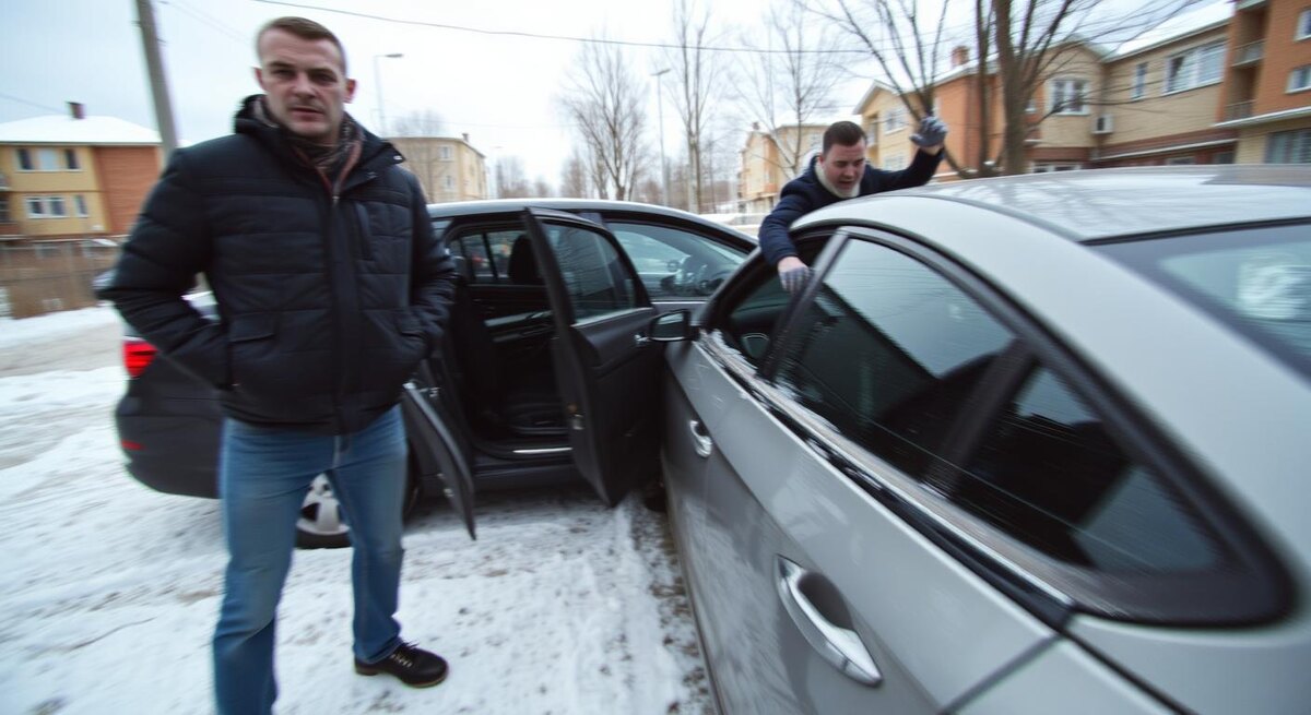 Эпицентр конфликта — вот он, в кадре, записанный на телефон подростком с ближайшей лавочки. Дверь кроссовера хлопает, гулко, как щелчок по нервам. Водитель, молодой мужчина в тёмной куртке, делает два стремительных шага в сторону Андрея: «Ты кто такой, чтобы мне указывать? Я здесь как хочу — так и стану». Голос громкий, резкий, воздух будто шипит. Он идёт на сближение, сокращая дистанцию, и машет рукой перед лицом Андрея, то ли пытаясь выбить телефон, то ли просто доминировать. От этой рулады во дворе становится ещё тише — даже качели словно замирают. Андрей улыбается уголком губ и говорит удивительно спокойно: «Мужчина, уберите машину с прохода. Тут дети. Не провоцируйте. Полицию уже вызывают». Фраза «полицию уже вызывают» как красная тряпка — приезжий дергает плечом, бросает фразу: «Сейчас я вам всем покажу, кто тут главный», и делает резкое движение корпусом, будто готовясь толкнуть.