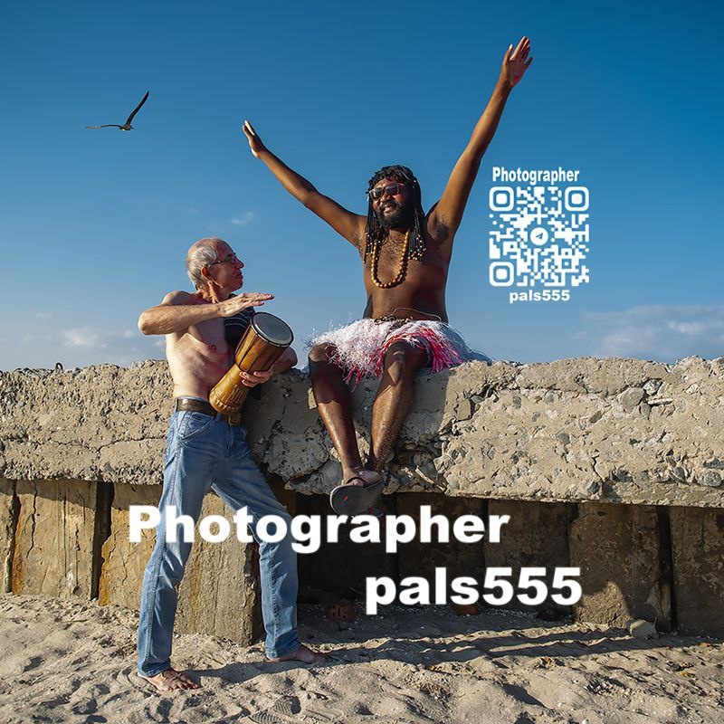 Под тёплым солнцем, на берегу моря, сошлись два человека — разные по цвету кожи, возрасту и судьбе. Но музыка сделала их братьями: ритм барабана стал общим сердцебиением, а радость танца — единым языком. В этот миг не существовало ни прошлого, ни границ, ни различий — только дружба, счастье и танец Мира, где каждый свободен и любим. И вот уже не два человека, а три, четыре, целый хоровод тел и душ, подхвативших этот искрящийся ритм. Пожилая женщина с седыми волосами, летящими как серебристые облака, затопала ногами в такт юноше, чьи движения были резки и стремительны, как полёт ласточки. Дети, словно разноцветные вихри, кружились и смеялись, их босые ступни шлёпали по влажному песку, оставляя мимолётные узоры. Барабанщик, чьи ладони были продолжением барабана, улыбался, глядя, как его ритм оживает в танцующих телах. Он видел не просто движения — он видел историю каждого. В плавных взмахах рук одной женщины угадывалась память о далёких горах, в энергичных прыжках молодого человека —