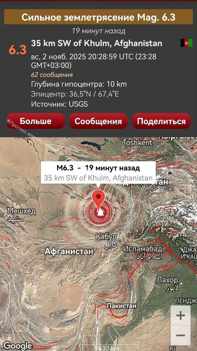 В ответ на пост Согласно предупреждению от 21 октября произошло сильное землетрясение по зоне Афганистан/Пакистан. ОСТИ наблюдались 20 октября и 19 октября.