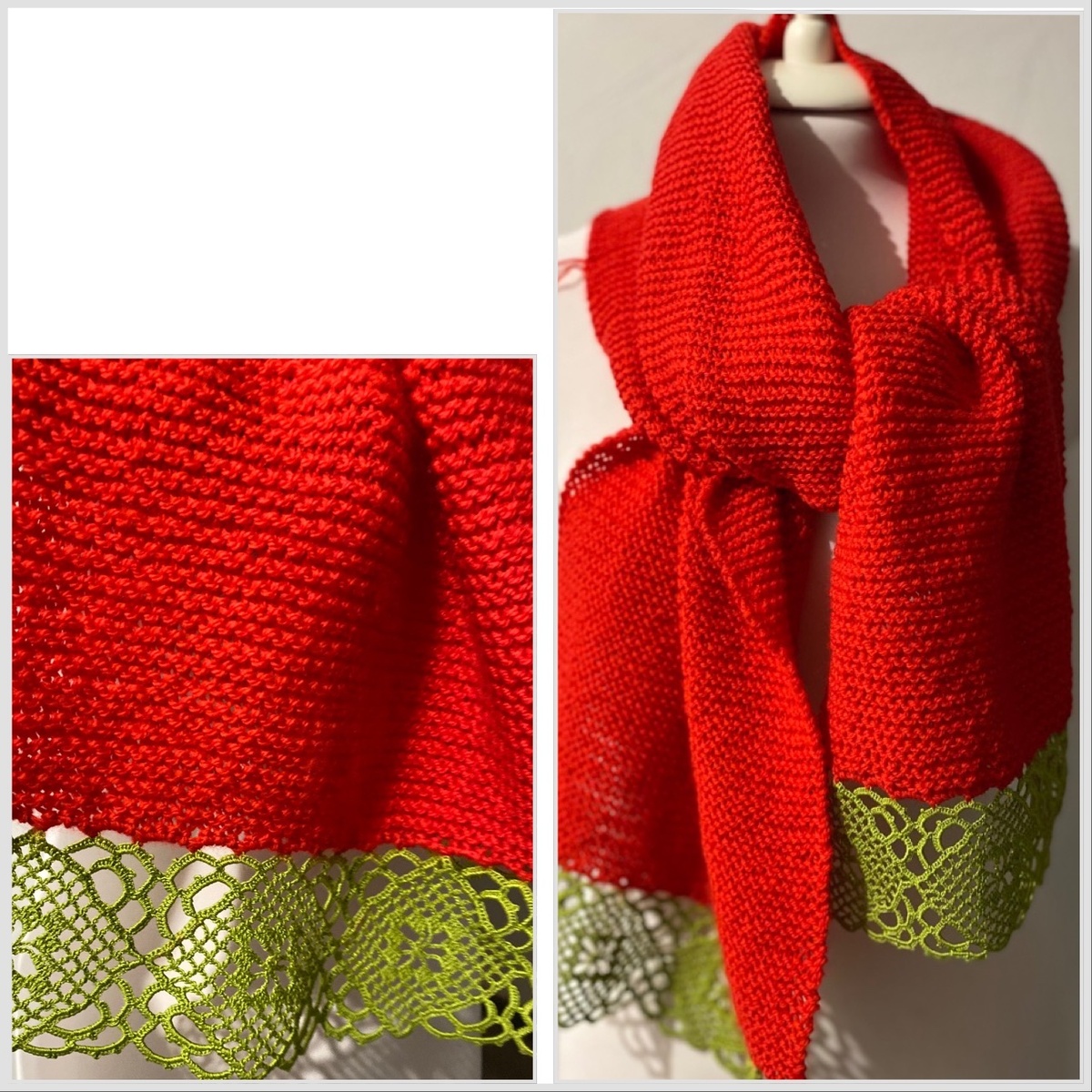 Наш классический шарф из пряжи кашемир/меринос с кружевом.