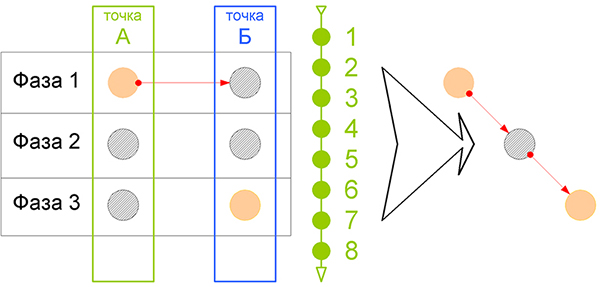 движение из А в Б разобьём на фазы(всего 3)... в фазе 1 яблоко находится в точке А (
