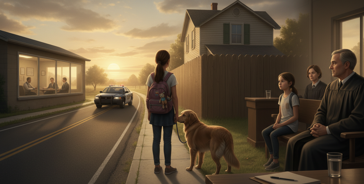 В августе 2022-го девочка, не дождавшись отца после школы, решилась уйти. Долго укладывала вещи: рюкзак, мягкая игрушка, ошейник для собаки, блокнот с записями – и наконец тихо вышла из дома, будто боялась, что щёлкнет дверь. Шла вдоль трассы, не оглядываясь, а собака остановилась рядом — будто чувствовала, что их жизнь делится на “до” и “после”.
