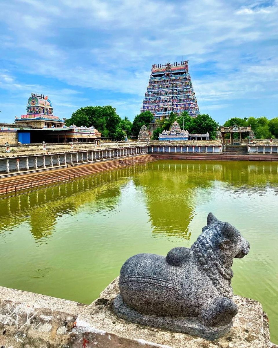 Шива как Танец сердца В Южной Индии говорят, что Шива есть Чидамбарам. Чидамбарам — это один из самых священных южноиндийских городов, расположенный в штате Тамилнад. Он известен прежде всего благодаря Храму Натараджи — великому святилищу, посвященному Шиве в его танцующей форме Натараджи, владыке Космического Танца. Само слово Чидамбарам в переводе с санскрита может означать пространство сознания или небеса сознания. Это символ внутреннего пространства сердца, где пребывает Божественное Сознание — сам Шива. В шиваитской традиции Чидамбарам считается центром вселенной, местом, где Шива раскрывает истину через танец — Ананда Тандаву, танец блаженства. 🔱Храм Натараджи Здесь находится один из пяти великих храмов Шивы, символизирующих пять элементов (панча бхута): Чидамбарам — эфир (акаша), Тируваннамалай — огонь, Канчипурам — земля, Тируванаикавал — вода, Калатхи — воздух. В святилище находится не только образ танцующего Шивы, но и пустое пространство, завешанное золотой занавес