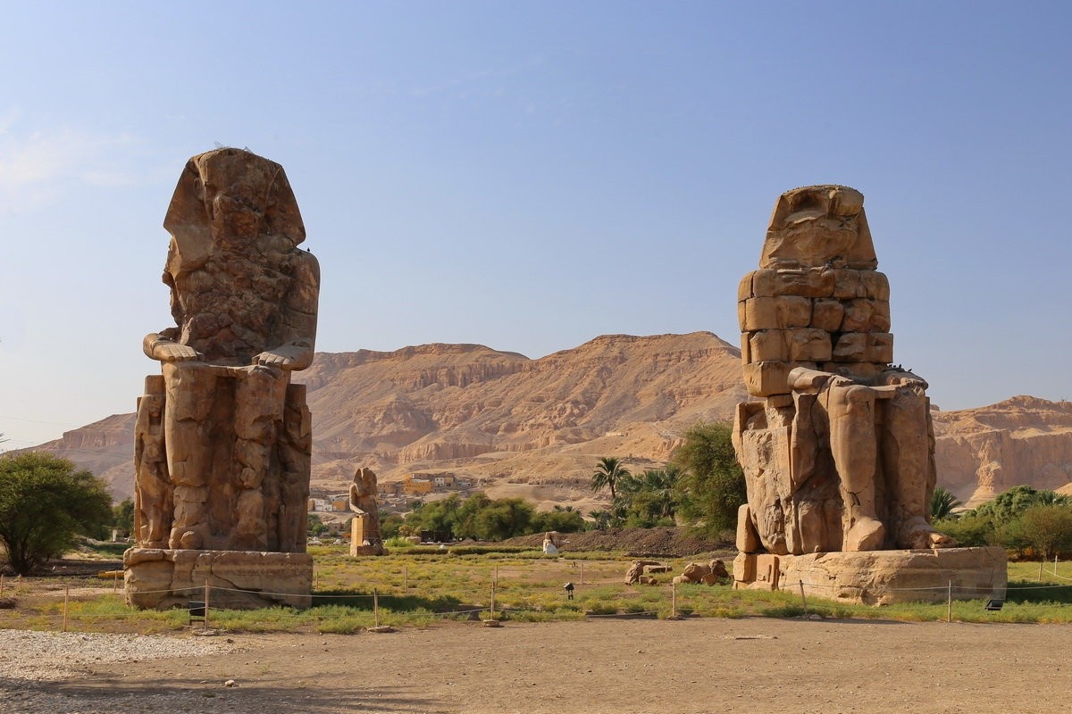На западном берегу Нила, напротив древних Фив, стоят две гигантские каменные фигуры. Это все, что осталось от самого большого поминального храма Древнего Египта.