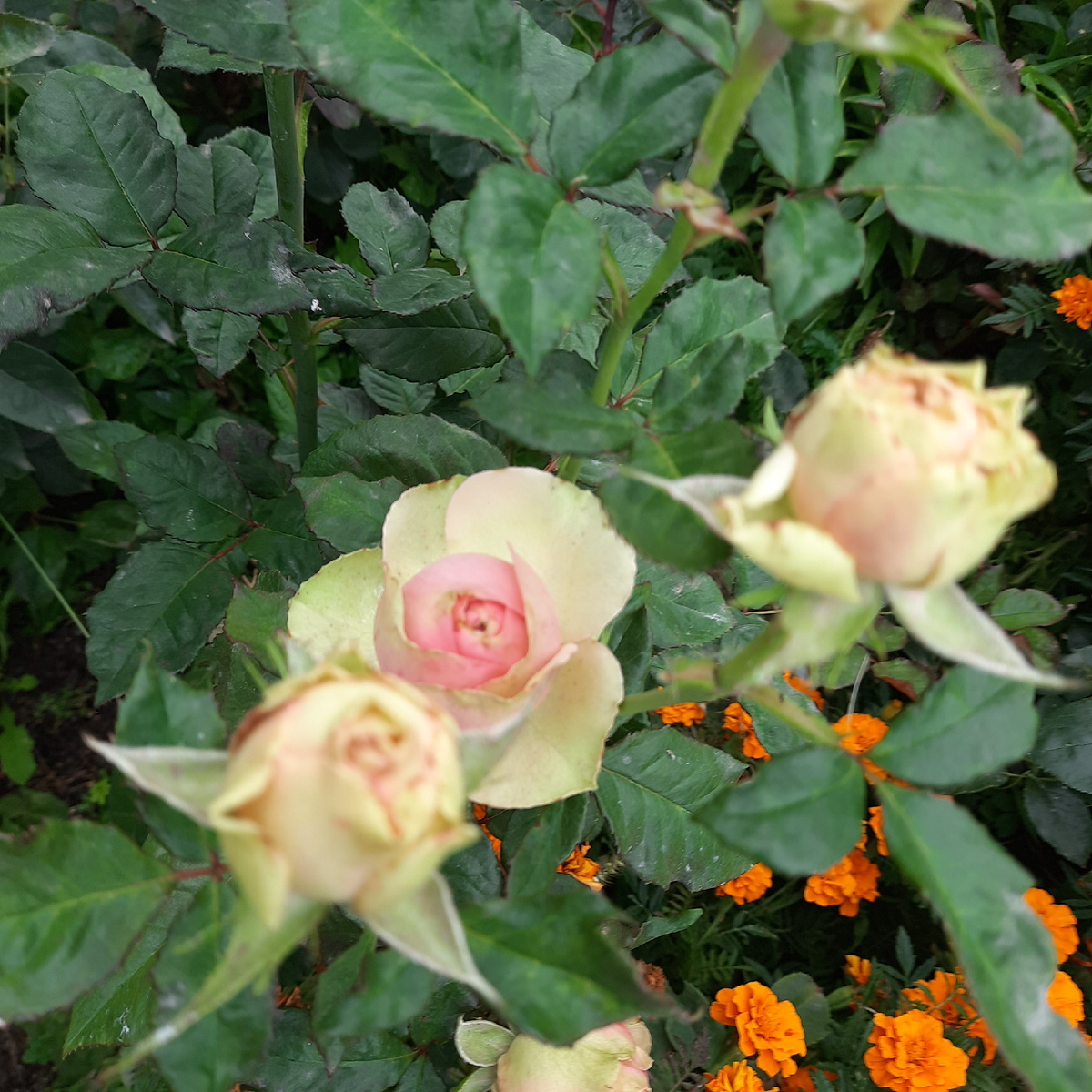 Очень нежная и трогательная розочка, цветет , как и положено- гроздями. Меняет свой цвет от ярко желтого, до кремовато розового по мере старения. Я всегда делаю скидку на , то что роза сеголетка*- это означает, что розе может быть и 2 и 3 года, но посажена у меня в этом году, ей надо время" раскачаться", проявить себя, жду!
