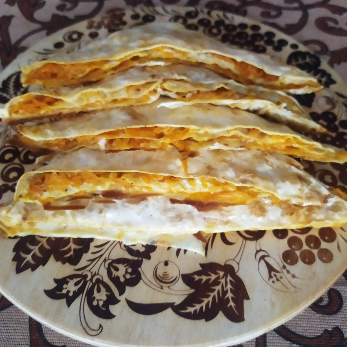 Доброго понедельника! Продолжаю готовить и есть тыкву. Очень просто и быстро сделать что-то такое типа пирожков. Лаваш лучше прямоугольный. Но круглый тоже можно. И упргугий, не очень тонкий, он может размокнуть от большого количества сочной начинки. Тыкву натереть на крупной тёрке. На один лаваш максимум 300 грамм тыквы, много начинки это супер, но , как я написала выше, лаваш может размокнуть или лопнуть. Далее возможны варианты. Сладкий и несладкий. С сырой или притушеной тыквой. Для сладкого можно в тыкву добавить яблоко, например, и немного изюма и корицы. Для несладкого - жареного лука. Тушить или не тушить тыкву - дело времени. Я обычно делаю с сырой и запекаю 20-25 минут, за это время она успевает приготовиться до приятной мягкости. Причём, в духовке готовится она сама ) не надо марать сковороду и перемешивать ) И, так как это просто наибыстрейший и наиленивейший вариант, то часто не добавляю к тыкве ничего и не тушу её, просто натрираю, распеределяю по лавашу, можно добавить