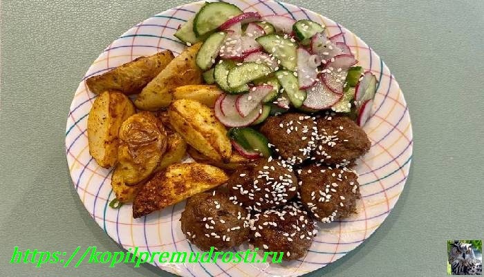 Как приготовить на ужин мясные шарики из фарша с картофелем и салатом из редиса