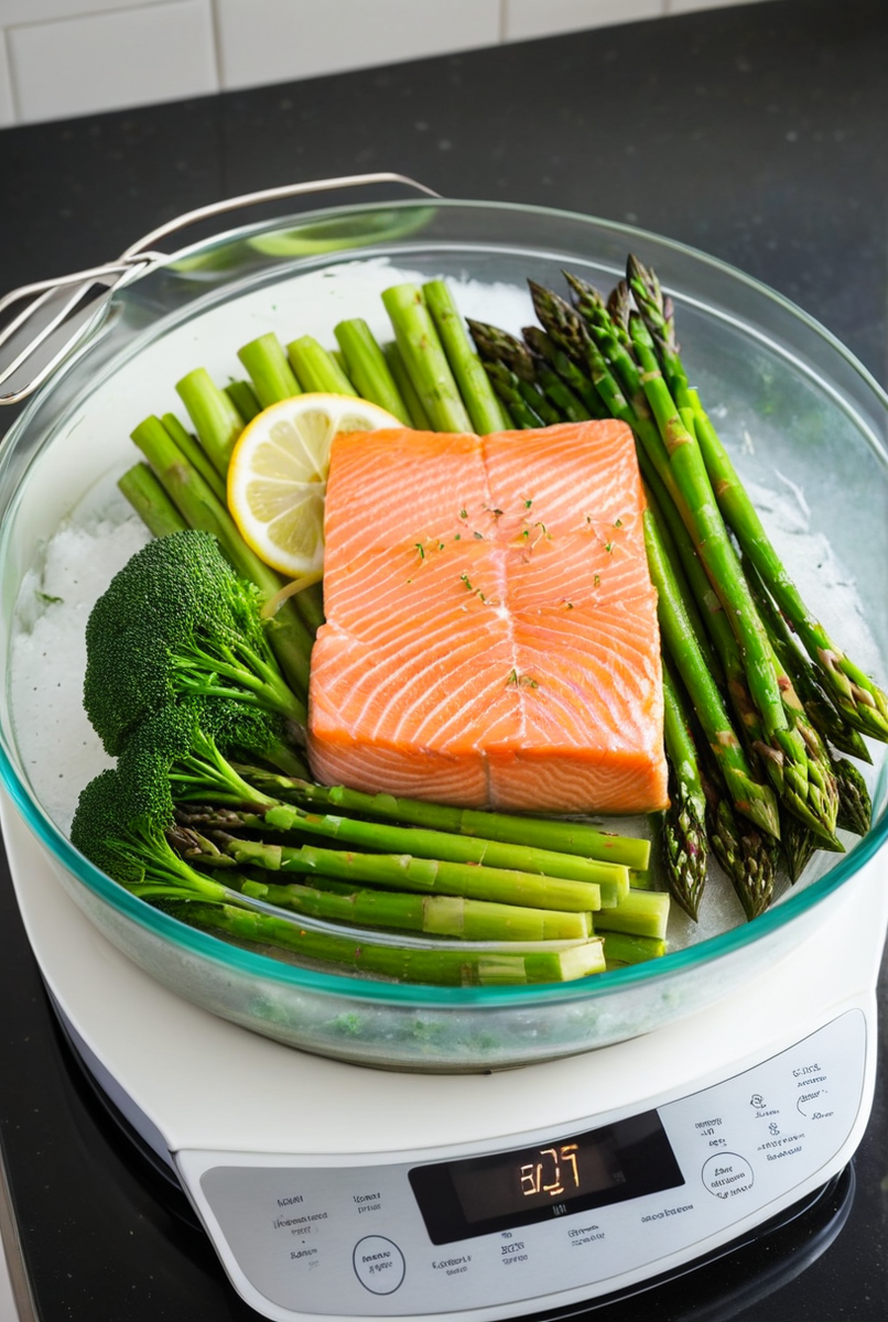 - Овощи на пару: Брокколи‚ морковь‚ спаржа. Готовятся 10-15 минут‚ сохраняя цвет и хруст. Идеальный гарнир.