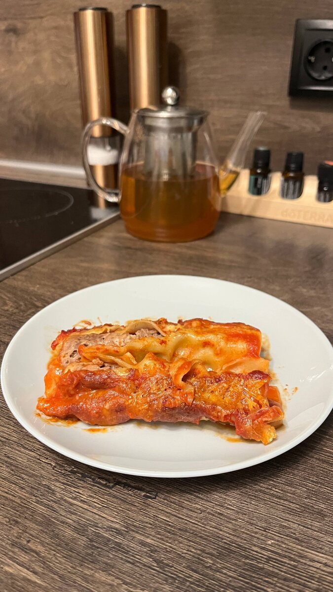 Фаршируем макароны, выкладываем в форму смазанную маслом. Сверху выкладываем мякоть перетертых томатов (готовую пассату или самим можно потереть на терке), разбавляем водой, солим. Ставим в духовку на 200°. Когда почти готово посыпаем тертым сыром. Еще один вариант рецепта тут
