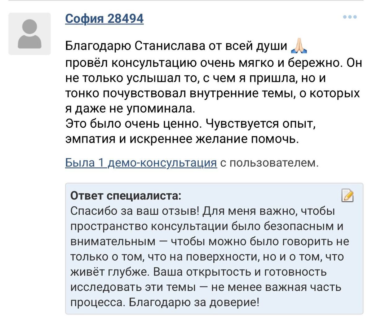 🪬Каждый отзыв — как тёплый луч солнца в моей работе. Благодарю вас за доверие и за то, что делитесь своими переживаниями и результатами. Это не просто слова, это маленькие истории изменений и открытий. Заходите, читайте, вдохновляйтесь. Читайте другие отклики моих клиентов по ссылке → https://vk.com/feedback_app Вместе мы находим путь к гармонии. Благодарю вас за то, что доверяете мне быть частью этого пути.