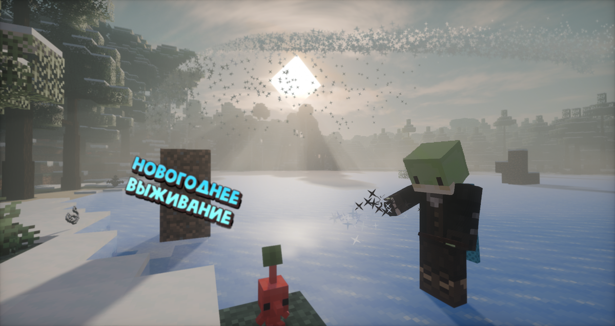 И вот одна из самых страшных проблем новогоднего выживания... ФАКЕЛА И ОСВЕЩЕНИЕ! Как сделать так, что бы лёд на таял, но и при этом у нас было всё освещено? Дело даже не в светлоте, а в том, что мобы спавнятся. В итоге, мы думали найти мод, который отключает возможность таяния льда, если такой есть. И да, замена льда не подходит, он меняет текстуру и это выглядит нелепо.
