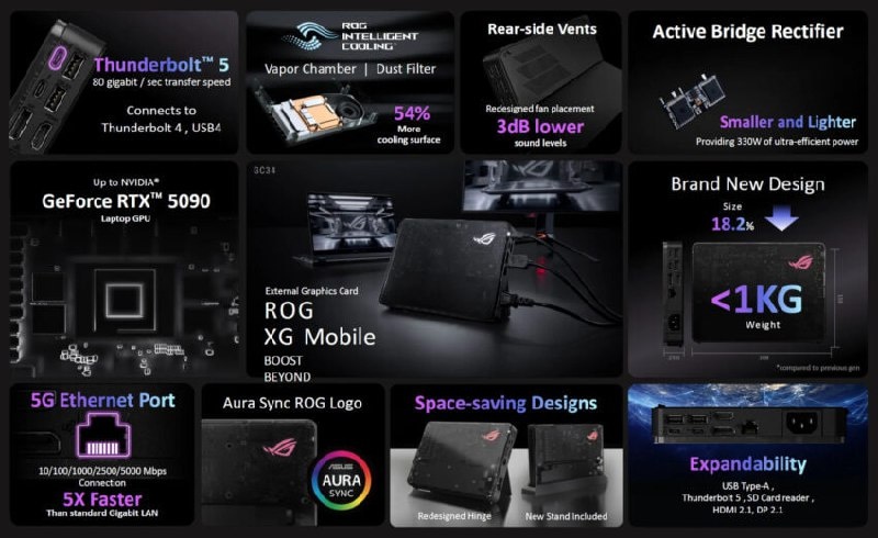✨ ASUS ROG XG Mobile 2025 — внешние видеокарты с RTX 5070 Ti и RTX 5090M на базе Thunderbolt 5