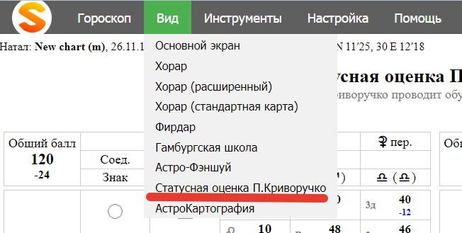 Научу вас сегодня смотреть одну занятную фишку в личном гороскопе. Для примера возьмем карту Антона Макарского. О его отношениях с женой писала ранее тут. Использовать будем сайт Сотис-онлайн. Итак, строим натальную карту Сотис-онлайн - Гороскоп - Создать новый - одинарная карта, вводим свои данные и получаем обычную круглую картину. Но! Сегодня мы пойдем чуть другим путем и выберем в меню вкладку Вид и далее Статусная оценка П.Криворучко. И получаем вот такую абракадабру: Чтобы понять насколько человек стремится и зависим от отношений, сравниваем верхние числа в кружках № 1 и № 2 (у Антона это 49 и 71). Если верхние числа в кружке №1 и №2 черного цвета, то человек может жить и один, и в паре. Если верхнее число в кружке №1 красного цвета, то это ярко выраженный индивидуалист. Ради своих интересов, принципов или дела он может поступиться любыми отношениями. Он вряд ли будет вдаваться в переживания своей второй половины. Эмпатия - не самая сильная черта такого человека. Эта характери