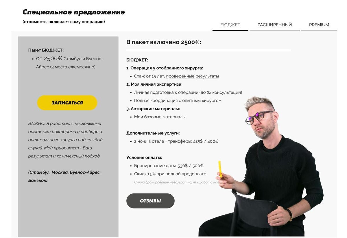 📌 Теперь можно оплачивать в рублях (Операция в Стамбуле, Турция) Для пакета СТАНДАРТ — с моей личной подготовкой и подбором опытного хирурга (1 операция в день, без конвейера) — теперь доступна оплата в рублях. Стоимость — 234 000 ₽. Операция выполняется одним из моих проверенных докторов, под моим личным контролем. Это тот же уровень качества и сопровождения, просто теперь — с фиксированной оплатой в рублях.