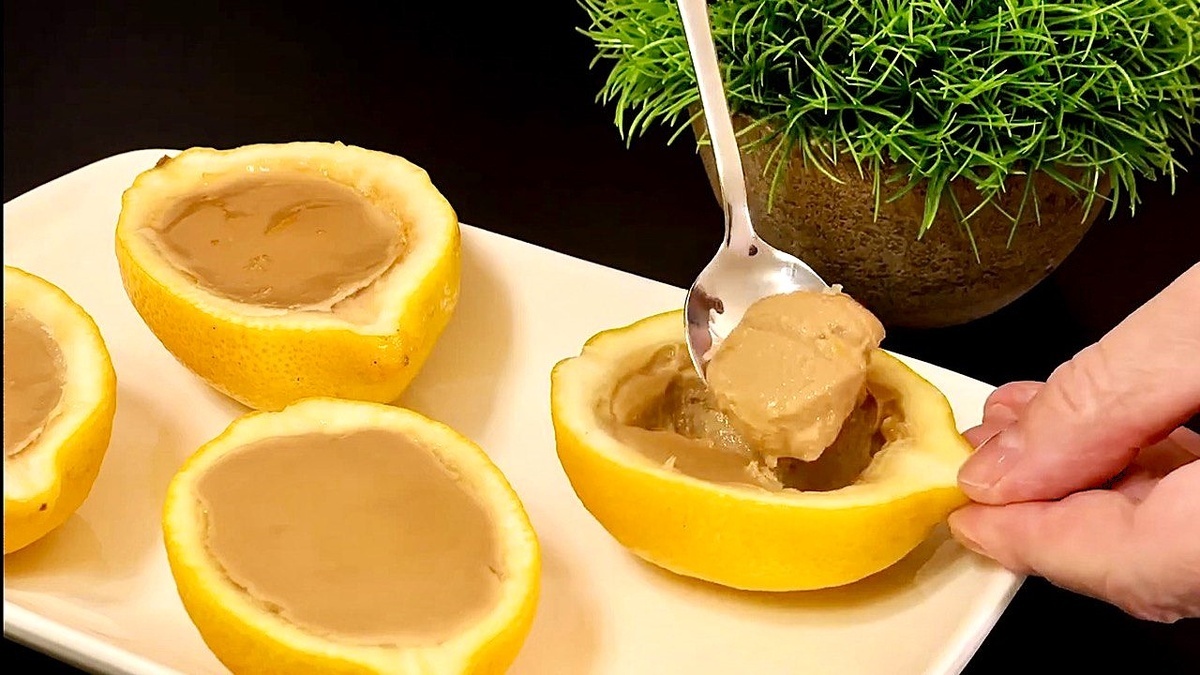 - Это не желе и не мороженое - а как раз нежный, слегка воздушный крем, который охлаждается в лимонных “чашечках”.