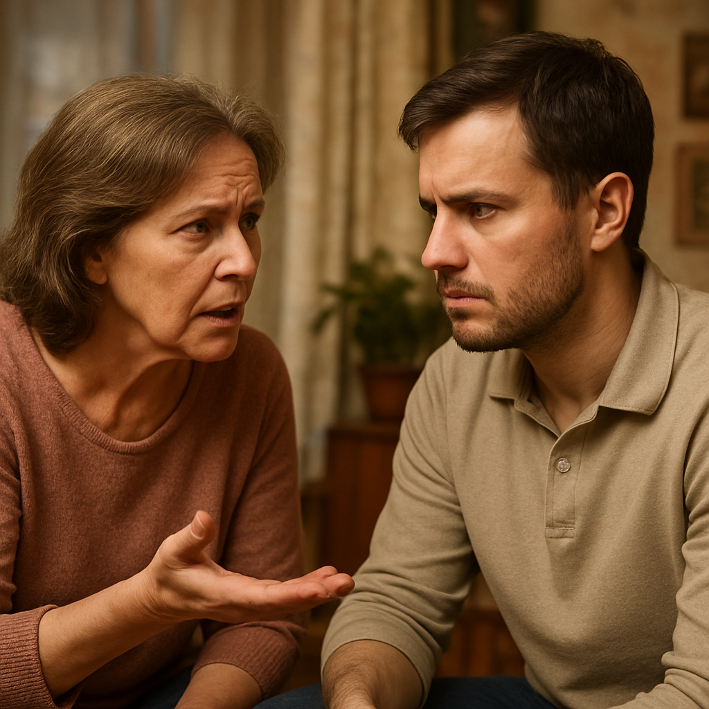 — Мама, что происходит? — тихо спросил мужчина, стараясь понять, как уладить этот конфликт.