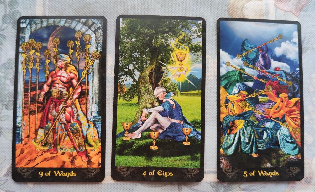 Карты дня: Девятка Жезлов, Четвёрка Кубков, Пятёрка Жезлов