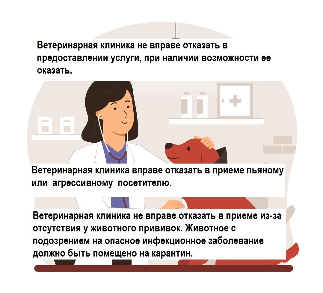 Ветеринарная клиника - это специализированное учреждение, оказывающее ветеринарные услуги, то есть осуществляющее предпринимательскую или иную деятельность, приносящую доход. Такое учреждение может быть как государственным, так и частным. И те, и другие обязаны исполнять российские законы, в частности законы "О ветеринарии" и "О защите прав потребителей", Гражданский кодекс Российской Федерации, "Правила оказания платных ветеринарных услуг" и многие другие. В Гражданском кодексе РФ есть понятие "публичный договор", закреплено оно в статье 426. И означает оно, что, коль скоро вы подписались на занятие бизнесом либо, как в случае с государственными ветклиниками, вам государством поручено оказывать ветеринарные услуги, то оказывать вы их должны всем и каждому, кто к вам обратится. И цена на услуги тоже должна быть одинаковой. Хотя льготы отдельным категориям вы можете установить, но об этом должно быть известно всем посетителям. Отказ лица, осуществляющего предпринимательскую или иную