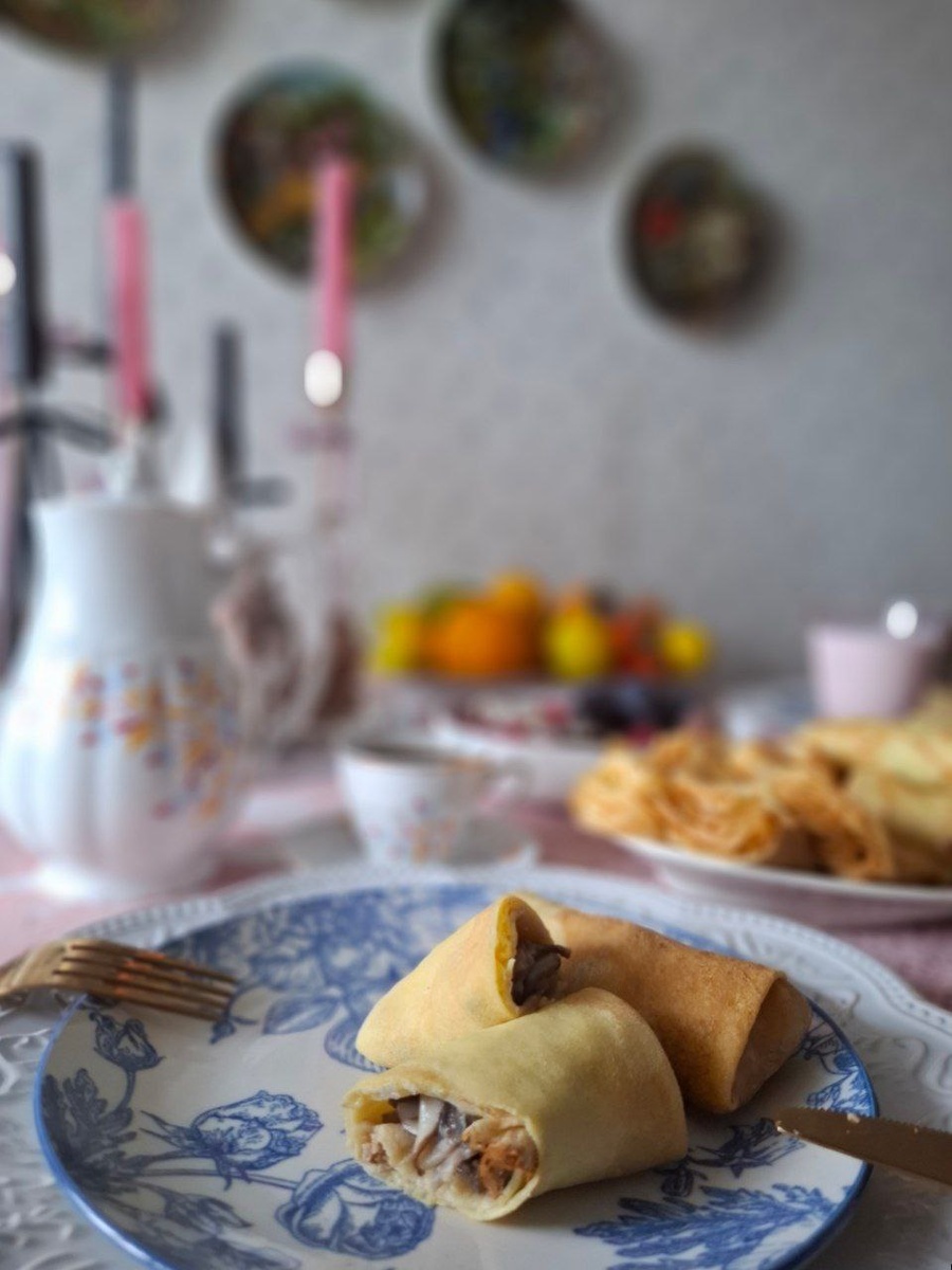 Волшебство выходных утром Утро выходного дня подобно ласковому прикосновению солнца сквозь шторы спальни. Оно дарит ощущение покоя и свободы от повседневных забот, позволяя насладиться каждым мгновением. Именно в этот тихий час рождается особый ритуал, который становится настоящим праздником вкуса и аромата — приготовление блинов. Готовка начинается с замешивания теста, словно создание магического зелья. Каждый ингредиент бережно добавляется, сливаясь в единую гармонию вкуса и консистенции. Тесто переливается и пенится, обещая нежнейшие кружева золотистых блинов. Аромат грибов, жарящихся на сковороде, наполняет кухню уютом и теплом. Шампиньоны — король среди грибочков, придающие блюду особую пикантность и благородство. Они станут идеальным дополнением к мягким лепешкам, создавая незабываемый дуэт вкусов. Но однообразие — враг гурмана, поэтому на столе появляются баночки с домашним вареньем и свежие ягоды, блестящие капельками утренней росы. Эти яркие краски добавляют красок праздни