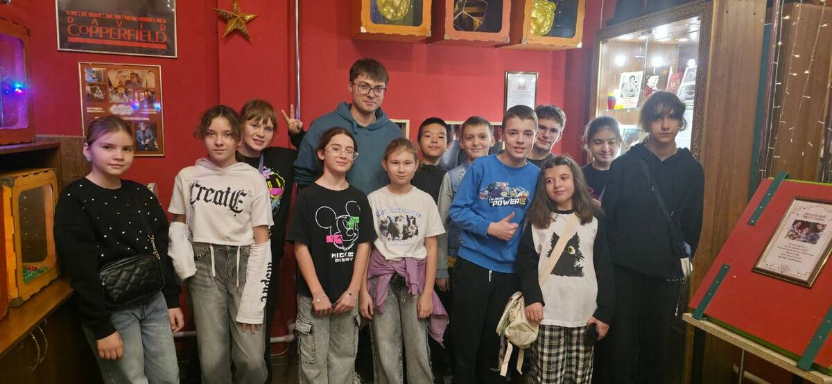 👀 30 октября ученики 5"В" класса под руководством Гладких Олега Дмитриевича отправились в захватывающее путешествие в Музей Фокусов и Иллюзий. Это место стало настоящим открытием для ребят, которые с нетерпением ждали возможности узнать секреты магии и иллюзий. Экскурсия началась с увлекательной лекции, где ребята узнали о том, как работают различные фокусы и иллюзии. Им рассказали о принципах оптики, психологии восприятия и о том, как маги используют эти знания, чтобы удивлять зрителей. Ученики были в восторге, когда узнали, что за каждым трюком скрываются научные принципы и хитрые уловки. Но самое яркое впечатление на ребят произвело выступление Волшебницы Виктории. Её магические трюки и захватывающие иллюзии заворожили всех присутствующих. Хотя Виктория не раскрывала секреты своих фокусов, её мастерство и артистизм были настолько впечатляющими, что ребята не могли оторвать от неё глаз. Каждый трюк вызывал восторг и удивление, оставляя у детей желание узнать больше о мире магии и