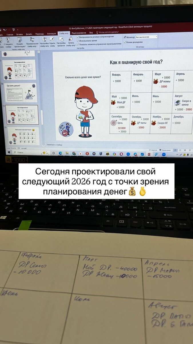 🔵 Начинать заниматься планированием в ноябре - самое то. Потому что процесс поступательный: 👉 Раз сел написал основное, пошел подумал, 👉 два сел, что-то дописал, опять пошел подумал 👉 и так к началу следующего года сформируется хороший план🔥 🟢 Начинать учить детей планированию на самых простых примерах (ДР близких, финансовая цель, первый заработок, карманные деньги) - отличный вклад в будущее детей💯👦🏼👧🏻❤️ 🔗 развитие финансовых навыков детей здесь 🗓️ У нас с ребятами еженедельные созвоны, на которых мы развиваем финансовые навыки в рамках клуба «Дети в Деле» Сегодня как раз проектировали следующий год. Дети поставили оценку 10 из 10, на сколько было понятно, интересно и полезно🫰 Участие в клубе «Дети в деле» стоит 990₽ в месяц - всех приглашаем🙌 🔗 развитие финансовых навыков детей здесь