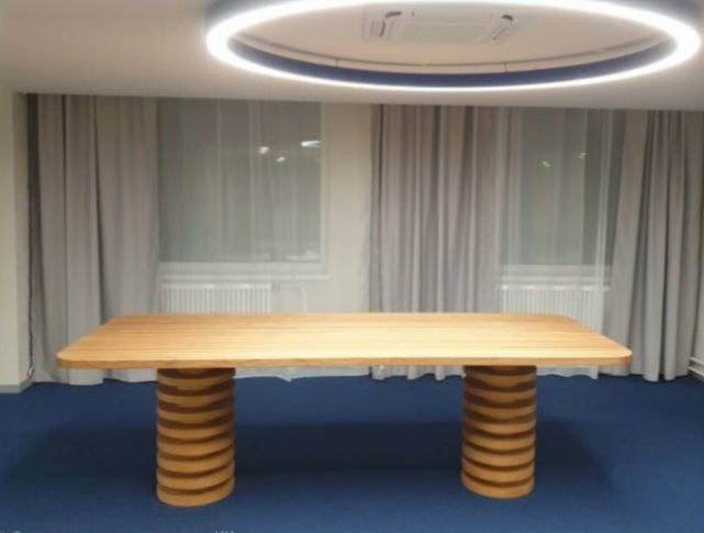 История одного стола : Сделала я как то проект для одной известной фабрики ,но стола такого как в модели не было ,и то что предлагали сделать было очень тяжелым ....Поэтому мои очень талантливые друзья из Сергиев Посада придумали такуб конструкцию опор шайб из секций ,которая была и легкой и стабильной , процесс изготовления такого стола оказался очень трудоемким- подготовка мдф шайб с насечками, крепление, склеивание, шпонирование, покрытие ,сборка , и все это за неделю ....😳Но мы справились и теперь эти столы необычной конструкции украшают фабрику Гжель, столы выполнены из щитов массива дуба ,уверена они прослужат очень долго 👌🌜🌴🌿☘